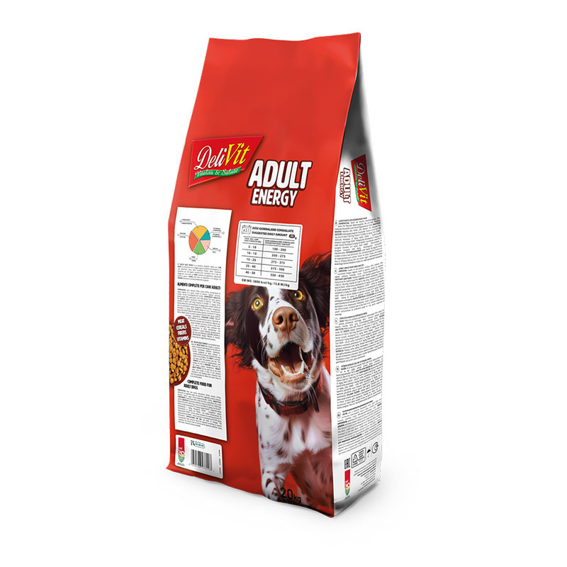 Alimento secco completo per cani adulti con elevato fabbisogno energetico, indicato per soggetti attivi o che svolgono attività fisica intensa. La formulazione con carni, cereali, fibre e vitamine fornisce un apporto nutrizionale bilanciato, supportando energia, vitalità e resistenza nel cane adulto.