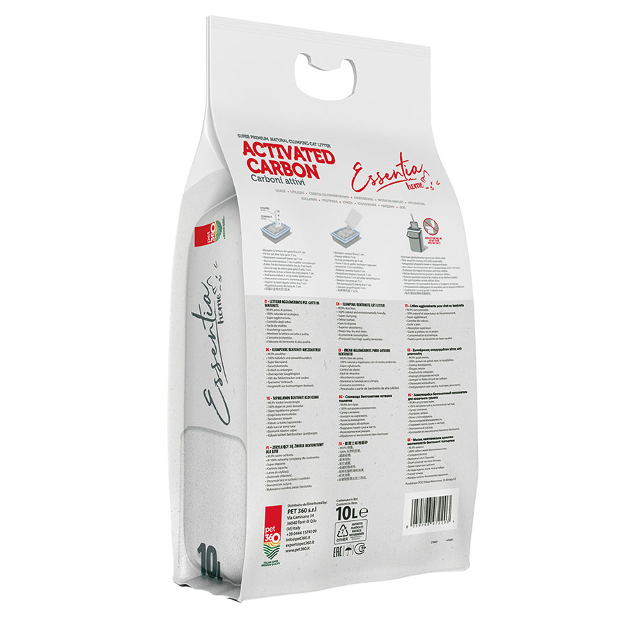 La lettiera Essentia Home Activated Carbon è una lettiera agglomerante in bentonite naturale arricchita con carboni attivi, studiata per garantire un controllo efficace degli odori e un ambiente sempre pulito per il tuo gatto. Grazie alla sua elevata capacità assorbente forma rapidamente grumi compatti, facilitando la rimozione quotidiana e mantenendo la lettiera asciutta più a lungo. La presenza di carboni attivi aiuta a neutralizzare gli odori in modo naturale, migliorando il comfort della casa. La sua formulazione a bassissima polverosità (99,9% dust free) contribuisce a mantenere l’aria più pulita e le zampe del gatto più asciutte.