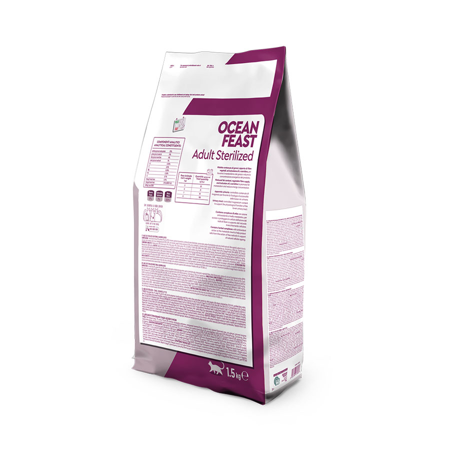 Alimento completo per gatti adulti sterilizzati, studiato per rispondere alle esigenze nutrizionali successive alla sterilizzazione. La ricetta Ocean Feast, a base di pesce, offre un’elevata appetibilità e un apporto nutrizionale bilanciato, contribuendo al mantenimento del peso forma e al benessere generale del gatto. Ideale per un’alimentazione quotidiana gustosa e digeribile.