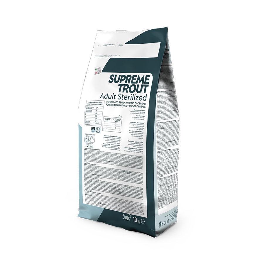 Alimento completo specifico per gatti adulti sterilizzati, formulato per supportare il mantenimento del peso forma e il benessere quotidiano. La ricetta a base di trota è altamente appetibile e digeribile, ideale per soddisfare le esigenze nutrizionali dei gatti sterilizzati, aiutando a mantenere una buona vitalità e una corretta funzionalità dell’apparato urinario. Arricchito con vitamine, minerali e ingredienti funzionali per un’alimentazione equilibrata ogni giorno.