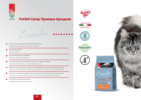 Super premiumqualit%u00e0 italianaSelecte8d ingredientsIngredienti selezionati%u0425%u0440%u0430%u043d%u0430 %u0437%u0430 %u0446%u0435%u043b%u043e%u0441%u043d%u043e %u043e%u0434%u0440%u0436%u0443%u0432%u0430%u045a%u0435 %u043d%u0430 %u0441%u0438%u0442%u0435 %u0440%u0430%u0441%u0438 %u043d%u0430 %u043a%u0443%u0447%u0438%u045a%u0430 %u0438 %u043c%u0430%u0447%u043a%u0438Complete maintenance food for adult cats of all breeds.%u0424%u0443%u043d%u043a%u0446%u0438%u043e%u043d%u0430%u043b%u043d%u0438 %u0440%u0435%u0446%u0435%u043f%u0442%u0438Functional recipes.%u0411%u0435%u0437 %u0437%u0440%u043d%u0430: %u0442%u043e%u0442%u0430%u043b%u043d%u043e %u043e%u0442%u0441%u0443%u0441%u0442%u0432%u043e %u043d%u0430 %u0436%u0438%u0442%u0430%u0440%u0438%u0446%u0438Grain Free: total absence of cereals.1 %u0435%u0434%u0438%u043d%u0441%u0442%u0432%u0435%u043d %u0438%u0437%u0432%u043e%u0440 %u043d%u0430 %u043f%u0440%u043e%u0442%u0435%u0438%u043d %u043e%u0434 %u0436%u0438%u0432%u043e%u0442%u0438%u043d%u0441%u043a%u043e %u043f%u043e%u0442%u0435%u043a%u043b%u043e + 1 %u0438%u0437%u0432%u043e%u0440 %u043d%u0430 %u0458%u0430%u0433%u043b%u0435%u0445%u0438%u0434%u0440%u0430%u04421 single animal protein source + 1 single carbohydrate source.%u0424%u043e%u0440%u043c%u0443%u043b%u0430 %u0441%u043e %u043d%u0435%u043a%u043e%u043b%u043a%u0443 %u0435%u0434%u043d%u043e%u0441%u0442%u0430%u0432%u043d%u0438 %u0441%u043e%u0441%u0442%u043e%u0458%u043a%u0438, %u0432%u043d%u0438%u043c%u0430%u0442%u0435%u043b%u043d%u043e %u043e%u0434%u0431%u0440%u0430%u043d%u0438 %u0437%u0430 %u043c%u0430%u0447%u043a%u0430, %u0438%u0441%u043a%u043b%u0443%u0447%u0438%u0432%u043e %u043c%u0435%u0441%u043e%u0458%u0430%u0434%u043d%u043e %u0436%u0438%u0432%u043e%u0442%u043d%u043e. Formulas with few and simple ingredients, specially selected for the cat, a strictly carnivorous animal.%u0417%u0431%u043e%u0433%u0430%u0442%u0435%u043d%u043e %u0441%u043e %u0440%u0430%u0441%u0442%u0438%u0442%u0435%u043b%u043d%u0438 %u0438 %u0431%u043e%u0442%u0430%u043d%u0438%u0447%u043a%u0438 %u0435%u043a%u0441%u0442%u0440%u0430%u043a%u0442%u0438 %u0437%u0430 %u0434%u0430 %u043f%u0440%u0443%u0436%u0438 %u043c%u0430%u043a%u0441%u0438%u043c%u0430%u043b%u043d%u0430 %u043f%u0440%u0438%u0440%u043e%u0434%u043d%u0430 %u0437%u0430%u0448%u0442%u0438%u0442%u0430 %u043d%u0430 %u043c%u0430%u0447%u043a%u0430%u0442%u0430Enriched with vegetables and botanical extracts to offer the cat maximum natural protection.%u041d%u0438%u0441%u043a%u0430 %u0441%u043e%u0434%u0440%u0436%u0438%u043d%u0430 %u043d%u0430 %u0444%u043e%u0441%u0444%u043e%u0440 %u0438 %u043c%u0430%u0433%u043d%u0435%u0437%u0438%u0443%u043cLow phosphorus and magnesium content.Pet360 %u0421%u0443%u043f%u0435%u0440 %u041f%u0440%u0435%u043c%u0438%u0443%u043c %u0431%u0440%u0435%u043d%u0434%u043e%u0432%u043820